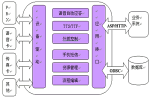 CTI服务器内部集成了手机短信引擎和Web接口。如果用户预先设置了通知方式,比如手机短信、电子邮件等,系统也可以根据用户的设置在用户指定的方式下完成通知功能。 软件结构
